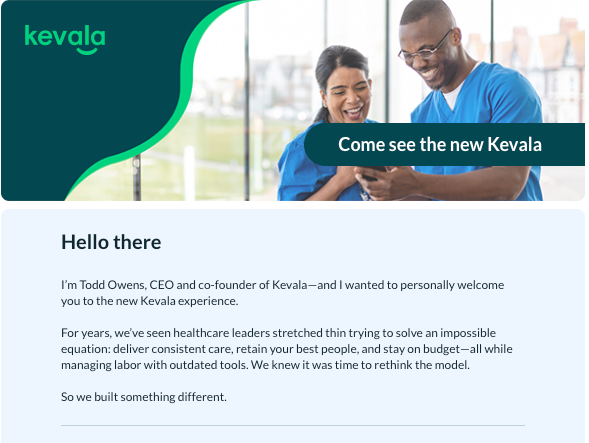 The heart of every healthcare business is mission-driven caregivers who love what they do. Kevala’s story needed to lead with that human reality—then make the case for a technology-driven solution that helps teams do their best work: caring for patients.
